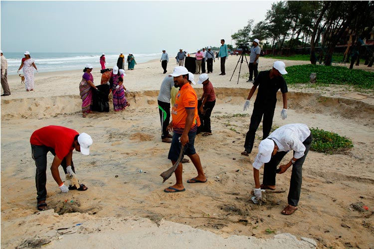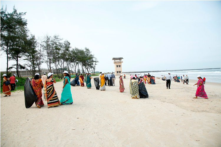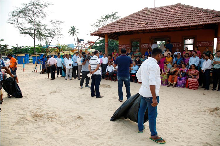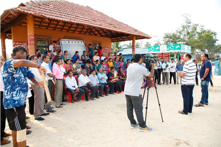 The week-long Beach cleaning programme was launched on 1.6.2018, at Panambur beach. Different line departments of Environment and Ecology, Department of Fisheries and students of College of Fisheries, Sahyadri Engineering college, NGOs and the general public actively participated in the beach cleaning programme, a stretch of 3.0 km of the beach was cleaned.