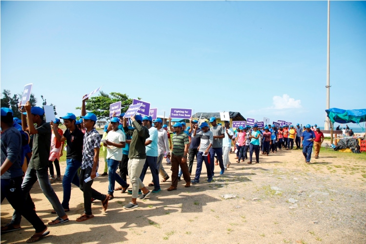The College of Fisheries team was also joined by the Indian Coast Guard teams and Central Industrial Security Force team at the Tannirbhavi site. The total congregation at the site was around 500 people. The local people and the morning beach walkers also joined the teams. The team collected the discarded wastes from tourists/visitors such as plastic straws, spoons, food wrappers, cups, bottles, toys etc. The team also found large number of empty liquor bottles, slippers and thermocol. The garbage also comprised of fishing related debris like fishing nets, ropes, floats, buoys etc. All these wastes were segregated into degradable and non – degradable wastes in gunny bags & garbage bags and were handed over to Mangaluru City Corporation. Further the team along with the placards took up rally along Tannirbhavi village spreading the message and making the residents/passersby aware of the harmful effects of plastic and other non- biodegradable materials dumped into the sea. The teams were also joined by local school children. The pamphlets highlighting the adverse impacts of pollution was distributed to local residents and were requested to avoid the usage of plastic.
