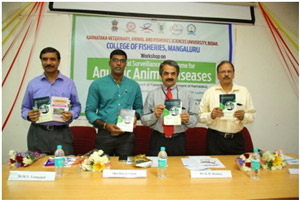 The workshop on “National Surveillance Programme for Aquatic Animal Diseases” for the officers of Department of Fisheries, Government of Karnataka was held on 26th August, 2016 at College of Fisheries, Mangalore. The workshop was attended by 14 fisheries officers from different parts of Karnataka. The Assistant Directors of Fisheries (ADF) were explained about the aim and objectives of the project and need for their cooperation in carrying out the surveillance work. Two brochures containing the information about the emerging diseases such as Enterocytozoonhepatopenaei (EHP) and acute hepatopancreatic necrosis disease (AHPND) was also released.