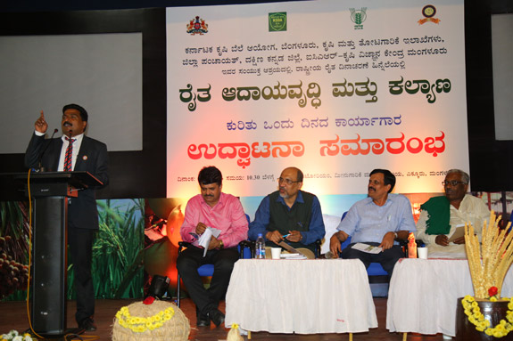 Krishi Vigyan Kendra, Dakshina Kannada in Collaboration with Karnataka Price Commission, Department of Agriculture organized a workshop on "Enhancement of Farmers' Income and Welfare" and National Farmers' Day on 23.12.2016 at College of Fisheries. Shri B Ramanatha Rai, Hon'ble Minister for Forest, Ecology and Environment inaugurated the program. Shri Ganesh Karnik, MLC presided over the function. Shri U T Khader, Minister for Food and Civil Supply, Sri Naleenkumar Kateel, Member of Parliment, DK, Smt Meenakshi Shanthigodu, President, Zilla Panchyat, DK, Dr Prakash Kammaradi, Chairman, Karnataka Price Commission, Dr SHivanadna Murthy, Registrar, KVAFSU, Bidar, Dr S M Shivaprakash, Director of Extension, KVAFSU, Bidar, Dr M N Venugopal, Dean, College of Fisheries, Dr Poornima Baliga, Dean, KMC, Manipal, Sri Hanumana Gowda belagurki, Adviser, KPC, Smt Kastoori Panja, Vice President, ZP, DK, Dr M R Ravi, CEO, ZP, DK, Mr Kempegowda, JDA, DK, Dr Shivakumar Magada, Head, KVK, DK were present on the occasion. About 450 people participated in the program. University officials submitted proposal for funding support under smart city project worth Rs 12 crores for establishing AGRIPARK at the campus. Six experts delivered a talk on different facets of Integrated Farming System. Daregudde village near Moodabidre was adopted for the study.