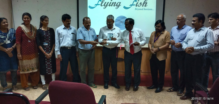 The college newsletter - Flying Fish was released by Dr. Managing Director, KFDC; Mrs Beena Shetty and Dr. S.M. Shivaprakash, Former Dean (Fisheries) and by Dr. Senthil Vel. A., Dean(Fisheries) on 25th September 2019. This newsletter brings out the activities, research and other studies carried out by the college staffs and its researchers.