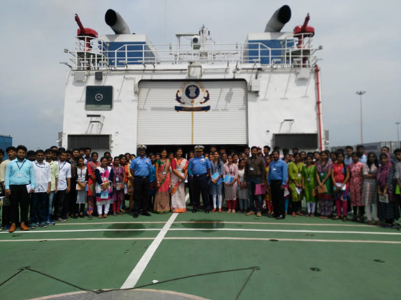 Students got an opportunity to visit ICGS –Vikram on 12th October 2019 at Panambur Port, Mangaluru. Commandant Raj Kamal Sinha was kind enough to arrange the visiting pass for all our students and staff as per Dean Dr.Senthil Vel request. The officers gave a brief explanation about the background, equipment and unique features of ICGS _Vikram and also arranged a short film based on the role of coastal guards in India. Later the students had interactive sessions with the coast guard officers where they shared their experiences and also gave insight on the selection criteria. The visit was very informative.