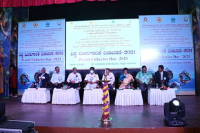 The College of Fisheries celebrated World Fisheries Day on 21st November 2021 by organising technical sessions and cultural events relevant to fisheries. Delivering the keynote address, Dr. Iddya Karunasagar, an eminent fishery microbiologist and FAO consultant, said that overexploitation of marine wealth and inland fish found in the natural environment should be stopped. On this occasion, the Additional Director of Fisheries (Inland) Mr. Dinesh Kumar H. Kaller said that the State Government has aimed at increasing the inland fish production from 2.51 lakh tonnes to 6 lakh tonnes by March 2022. He also added that the Pradhan Mantri Matsya Sampada Yojana has various programmes to boost the fisheries sector. Deputy Inspector-General and Commander, Indian Coast Guard, Karnataka, Shri. S. B. Venkatesh reminded everyone that fish production has to be increased through a collective effort but it should be a sustainable effort. He said that this year the Coast Guard has rescued 210 fishermen who were in distress at sea. Dr. Iddya Karunasagar gave a talk on ``recent advances in aquatic animal health and environment management for sustainable aquaculture”. Dr. R. Ramesh, Director, National Centre for Sustainable Coastal Management (NCSCM) from Ministry of Environment, Forest and Climate Change delivered a lecture on ‘potential of blue economy in the country and development of fisheries’. Video and jingles on development of fisheries by the Department of Fisheries and prepared by CoFM were launched on the occasion. A report on ‘Rapid Assessment of Blue Economy in Karnataka‘ was also released. Dr. Indrani Karunasagar, Director (R&D), Nitte University Centre for Science, Education and Research also spoke on the occasion. Students from various colleges of Mangaluru took part in the inter collegiate fisheries