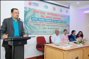 Visvesvaraya trade promotion center (VTPC), KAPPEC, GOK, Bangalore and Karnataka Veterinary, Animal and Fisheries Sciences University, Bidar, College of Fisheries, Mangalore, jointly organized an Export training programme on Fish and Marine products at College of Fisheries, Mangalore for the benefit of New entrepreneurs, self-help groups, FPO’s, exporters, progressive fish processors from 19.12.2022 to 22.12.2022. Shri. Banthanal, MD, KAPPEC, Bangalore Inaugurated the function by lighting a lamp. Sri. Gokul Das Nayak, Joint Director of Industry, Smt. Seetha, Joint Director of Agriculture, Mangalore and Dr. Nagaveni, C., Advisor to VTPC, Bangalore were presented as invitees and graced the occasion. Dr. Shivakumar Magad, Dean, College of Fisheries, Mangalore, presided the function. Dr. B. Manjanaik, Professor and Head Department of Fish processing technology, College of Fisheries, Mangalore co –ordinated the programme. There were 12 resource persons from different areas were participated and presented their talk in the programme. 70 participants from different parts of the Karnataka were participated in the training programme and benefitted. The valedictory function was organised on 22.12.2022 and certificates were distributed to the participants.