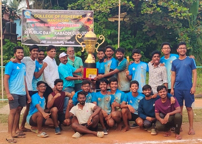 On the occasion of Republic Day celebration, Khel Kabaddi Republic Day Cup 2023 was organized by Marine Marcels in a befitting manner. The Khel Kabaddi Republic Cup was inaugurated by Dr. Dinesh Kaller, Joint Director (Marine) and MD, KFDC, Mangalore and Captain Jaya Prakash Mendon graced the occasion as chief guest. Dr. Shivakumar M, Dean, College of Fisheries, Mangalore presided over the function. Mr. Manoj Kumar, Asst. Professor and Head, Dept. of Physical Education coordinated the programme. A total of five teams participated in the Khel Kabaddi Republic Cup and went on for the whole day. The final match was held between Aqua Tridents and Ocean Samaritans at 5.00 pm. Ocean Samaritans won the match with Mr. Aravind getting the highest raid points while Mr. Vijay getting highest tackle points. The prizes for winners and runners were distributed by Dr. Praveen Puthran, retired ADG, ICAR, New Delhi and Captain Jayaprakash Mendon.