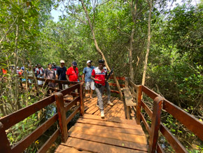 After this, the team visited “Protected Mangrove Forest” at Honnavara where more than 32 verities of mangroves are grown profusely and added unique aquatic scape and it is protected by the Department of Forest, Government of Karnataka. The catwalk trail through the mangroves will give the different experience. The students were taken on boat to see the submerged mangroves.