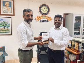 He addressed the staff and students of the college and shared his research experiences while motivating the students to take up advanced researches. The event was organized in collaboration with the College of Fisheries Alumni Association (COFAA), Mangalore. Dr Mohan Kumar B., Secretary, COFAA, Dr Shivaprakash, S M., Former Director of Extension, KVAFSU, Dr Prakash Patil, NITTE DU, Mr Rajeev Channappa were also present along with the staff and students of the college. Dean Dr Shivakumar Magada presided over the event. Dr Vinod was felicitated by the COFAA family.