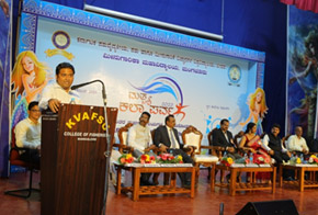 Dr. Kumar Naik A S., the Staff Advisor and Organizing Secretary of the event, extended a warm to the esteemed guests and the audience. The inaugural ceremony continued with the ceremonial lighting of the lamp by the dignitaries. Prof. K. C. Veeranna, the Hon’ble Vice – Chancellor, KVAFSU, Bidar, delivered an inspiring inaugural speech, setting the tone for the event. Shri. Mullai Muhilan M. P., Deputy Commissioner, Dakshina Kannada shared motivational insights with the youth through his address. The event was graced by the presence of Dr. Tandle, M. K., DSW of KVAFSU, Dr. Shivaprakash S.M., Former Dean of the College of Fisheries, Shri Mime Ramdas, a renowned Actor and Director, and Ms. Shailashree, an esteemed Actress from Mangaluru. Dr. H. N. Anjanayappa felicitated all the guests and delivered a presidential address, highlighting the significance of the occasion. Dr. Jayanaik, another Staff Advisor and Organising Secretary of the event, expressed gratitude through a vote of thanks. Mrs. Vandana, Assistant Professor skillfully compeered the programme.