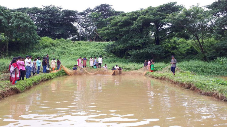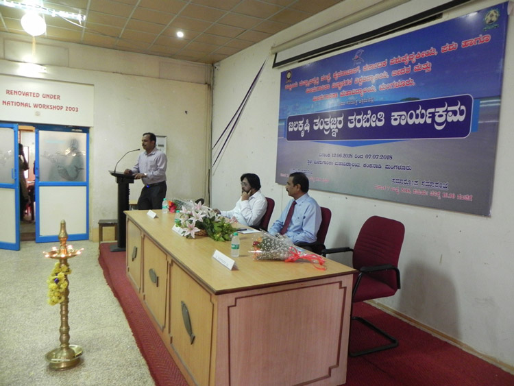 A skill development program on Aquaculture Technician Training was organized by the Department of Aquaculture, College of Fisheries, Mangaluru with funding support from National Fisheries Development Board, Hyderabad for 25 participants of Dakshina Kannada for a period of 25 days from 12.06.2018 to 07.07.2018. The training covered various aspects of fish farming like pond reparation to grow-out of table fish. The training constituted 70 hours of theory and 130 hours of practical as envisaged by Agricultural Skill Council of India (ASCI).