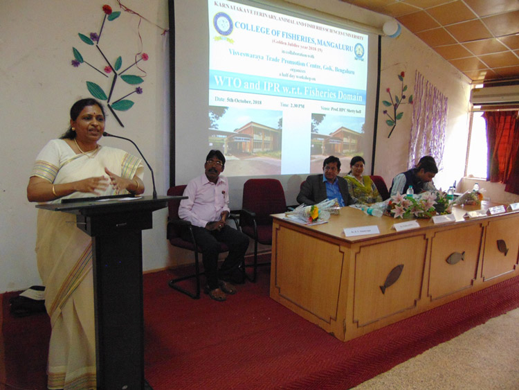 A one day workshop was organzed on "Intellectual Property Rights and WTO issues with respect to Fisheries Domain" on 05-10-2018 at 2:300 pm in Prof. HPC Shetty Hall. This was organized in collaboration with Visvesvaraya Trade Promotion Center (VTPC). GOK, Bangalore.