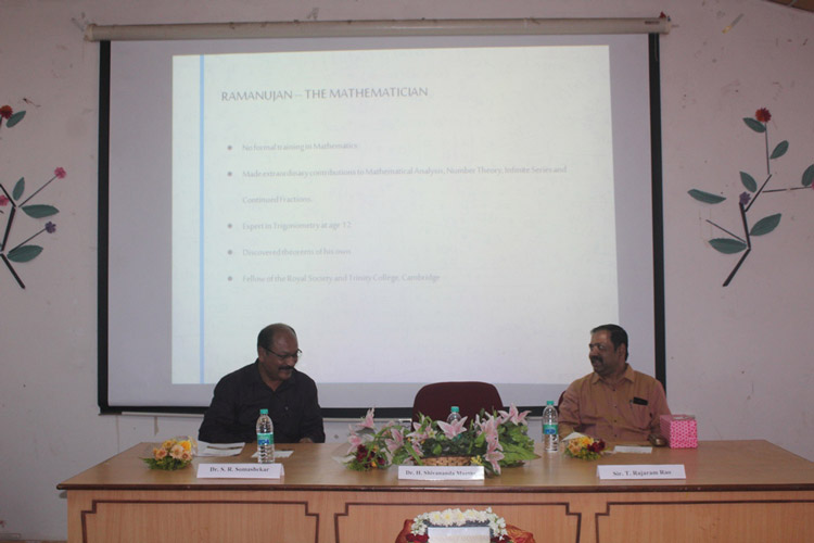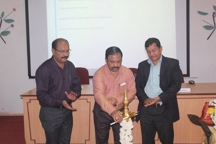 The event began with the invocation followed by the welcome speech of Dr. Somashekar, Prof and Head, Dept. of FESE. Chief guest Sri T Rajaram Rao ,The Principal, Vikas College, Mangalore inaugurated the programme by lighting the lamp and also offered floral tributes to the great mathematician- Sri Srinivasa Ramanujan.